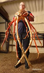 Одним из самых крупных членистоногих на Земле является японский краб-паук. Его головогрудь имеет длину до 37 см, а вот если померить краба вместе с ногами – то получится все 4 метра! Этот представитель животного мира питается останками животных и моллюсками и может прожить до 100 лет. Обычно его использую в научных, пищевых и декоративных целях, часто селят в крупных аквариумах.